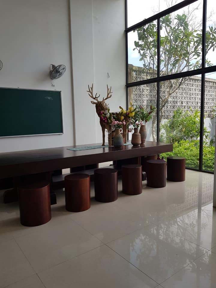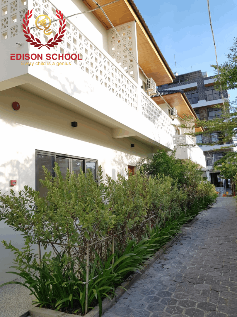 - Môi trường giáo dục thân thiện: Toàn ngôi trường được bao phủ bằng cây xanh, không gian tươi mát hoà hợp với thiên nhiên, bên trong phòng học rộng rãi, cửa sổ đón nắng, đầy đủ ánh sáng cho các con học tập vui chơi.